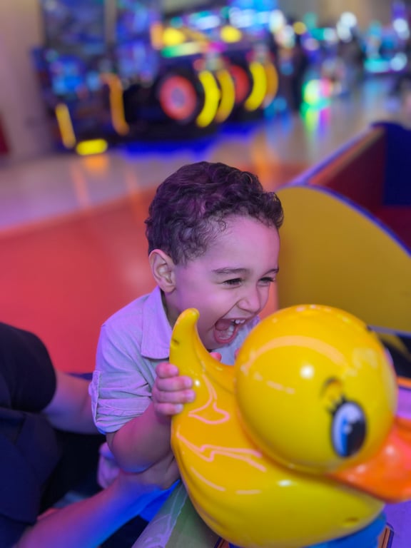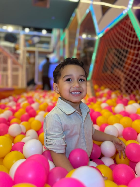 Um parque indoor climatizado cheio de brinquedos incríveis! 🎠