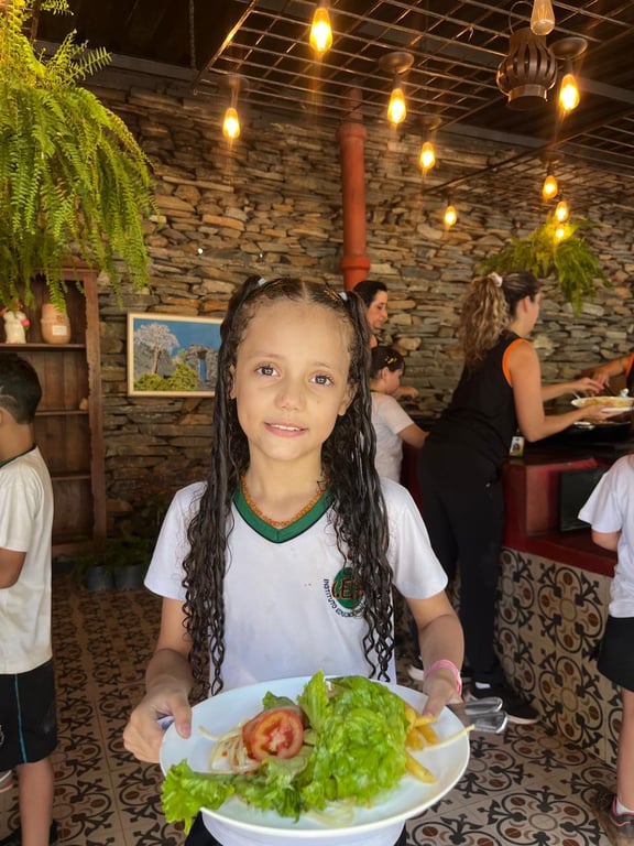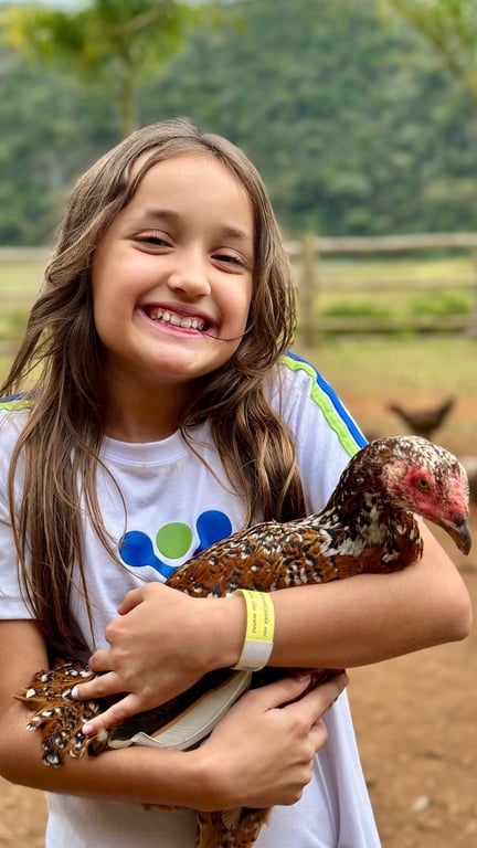 Interações em inglês durante toda a experiência (atividades, refeições e deslocamentos), estimulando a comunicação de forma natural e contextualizada.